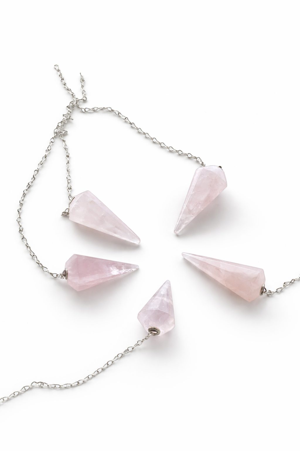 El péndulo cuarzo rosa es una herramienta de radiestesia elaborada en talleres de lapidación de Minas Gerais, Brasil, a partir de material procedente de Brasil.